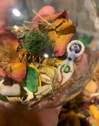 For me, creating witch balls has become a way of staying connected to the land through the darker months.The gathering, the drying, the laying everything out in colour and texture — it feels like a quiet ceremony in itself.